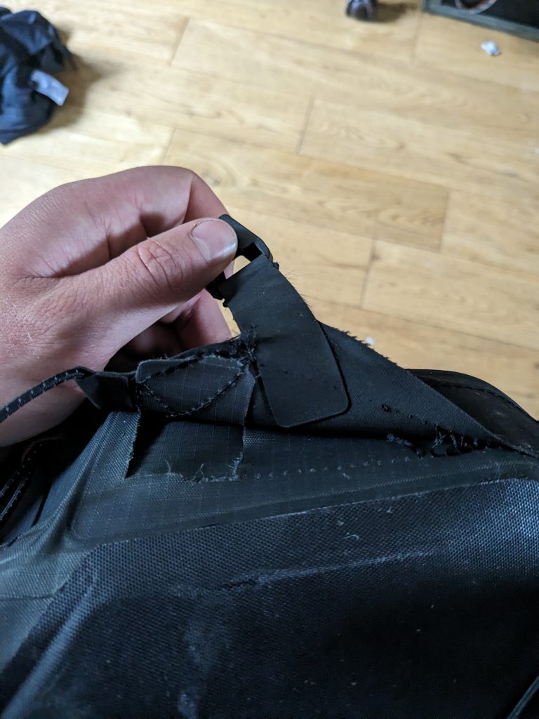 The dry bag section has so far held up to deluges, and what I like most is that it detaches from the harness, which is incredibly useful as once the tent is up, everything in the dry bag is for in the tent, and it can be easily thrown in the tent if raining. It also makes packing up the morning after equally mostly faff free.