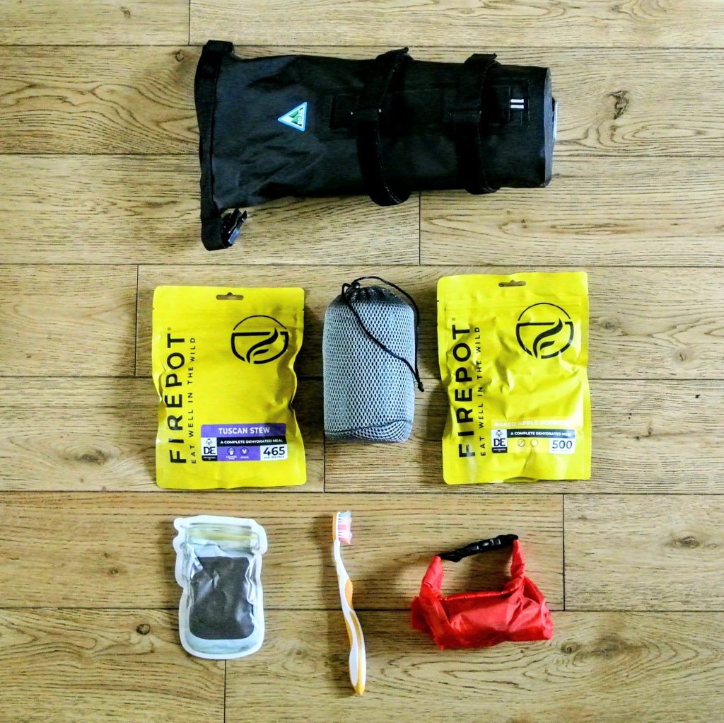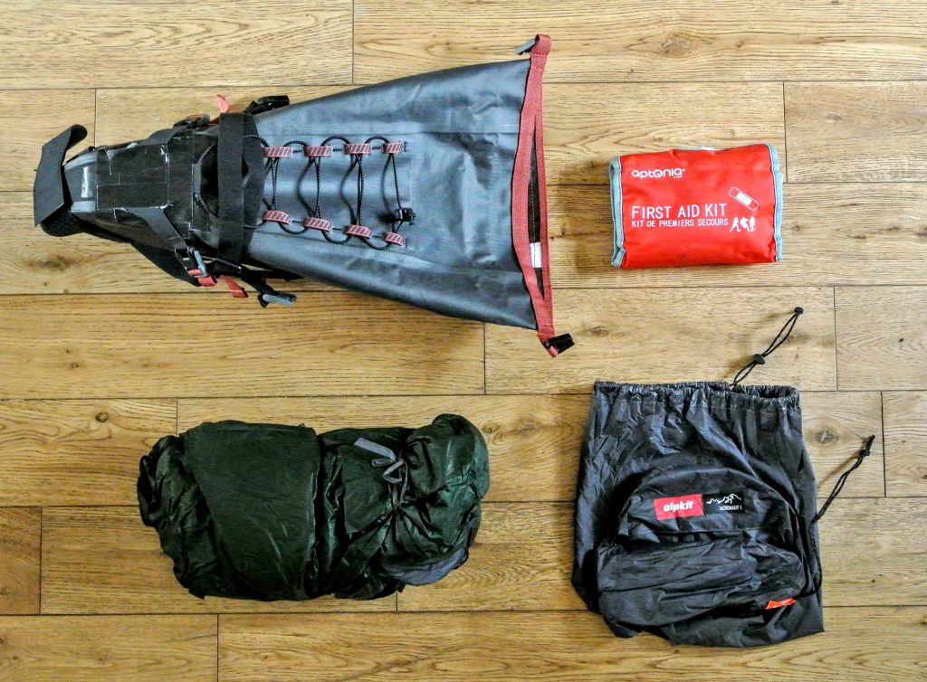 All of that kit in the image above packs down into these bags, which get strapped to my bike.
