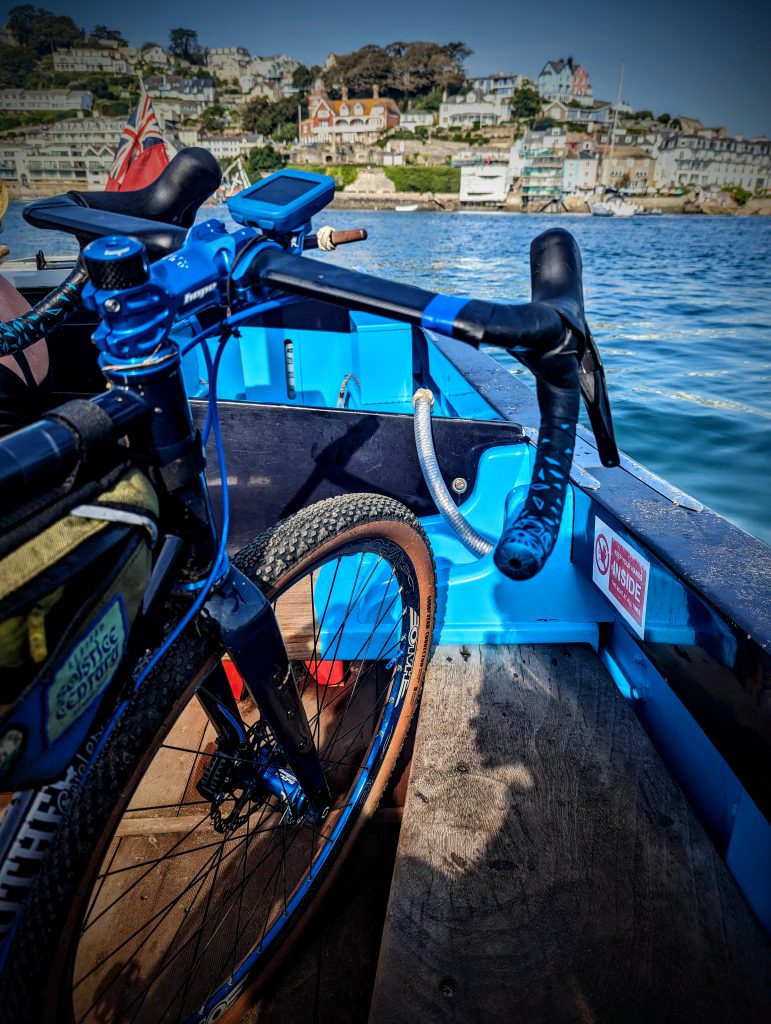 When it did end, it spat me out onto a beach opposite the town of Salcombe. I was really looking forward to this bit. The beach was beautiful, Salcombe is lovely, and the view from the opposite side really does do it justice. I’d purposefully planned the route this way, because I knew that as I was at the mouth of the harbour, I’d be able to pay a couple of quid to hop on the 2 minute ferry crossing to the aptly named Ferry Inn at Salcombe. I had the same glee that a toddler does when they are shoving your underpants, phone and a full toilet roll right into the u-bend of the toilet. Vibrating with excitement at the fulfilment of a bucket list item, my bike and I were on a little boat in the sea, on an adventure.